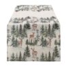 Meravigliosa tovaglia decorata lungo tutti i bordi da una stampa con paesaggio invernale con cervi e cerbiatti